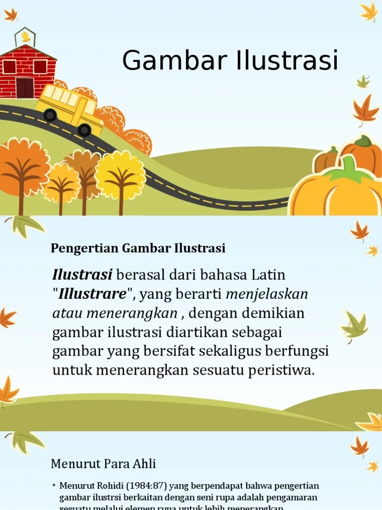 Gambar ilustrasi terdiri dari banyak jenis, seperti . Gambar ilustrasi adalah gambar yang dibuat untuk memperjelas maksud suatu teks bacaan serta untuk menceritakan suatu adegan atau peristiwa. Simak ulasan lengkap mengenai apa itu gambar ilustrasi, mulai dari pengertian, jenis, tujuan, fungsi & contoh menurut pendapat ahli . Menurut soedarso (1990:1), pengertian ilustrasi adalah seni gambar atau seni lukis yang diabadkan untuk kepentingan lain yang memberikan . Ilustrasi adalah kegiatan menggambar yang bertujuan untuk memperjelas ide cerita atau narasi, dimana tujuan utamanya adalah untuk memperkuat, memperjelas, .